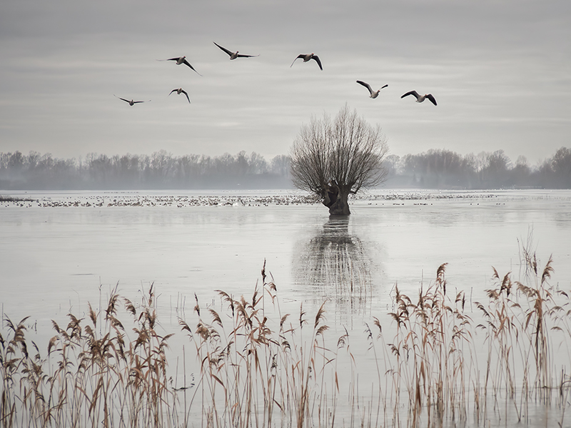 Winter Geese Flight Swavesey Lakes